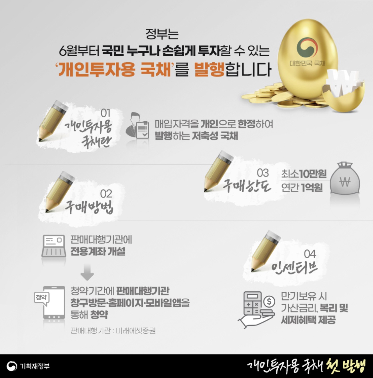 ※ 개인투자용 국채 : 매입자격을 개인으로 한정하여 발행하는 저축성 국채