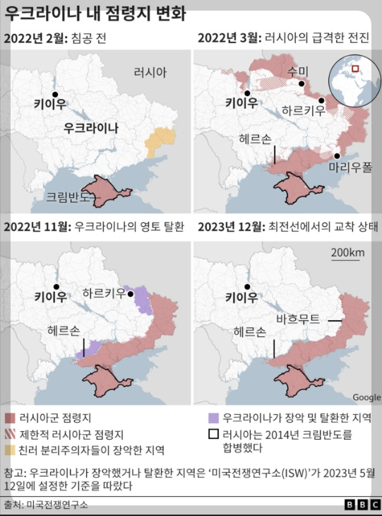 러시아는 이후 남부 및 동부 지역으로 전선을 옮겨 돈바스와 남부 헤르손 지역을 중심으로 공세를 강화했습니다. 우크라이나는 서방의 군사 지원을 받으며 반격 작전을 이어가고 있으며, 러시아가 장악했던 지역의 일부를 탈환하는 성과를 내고 있습니다.