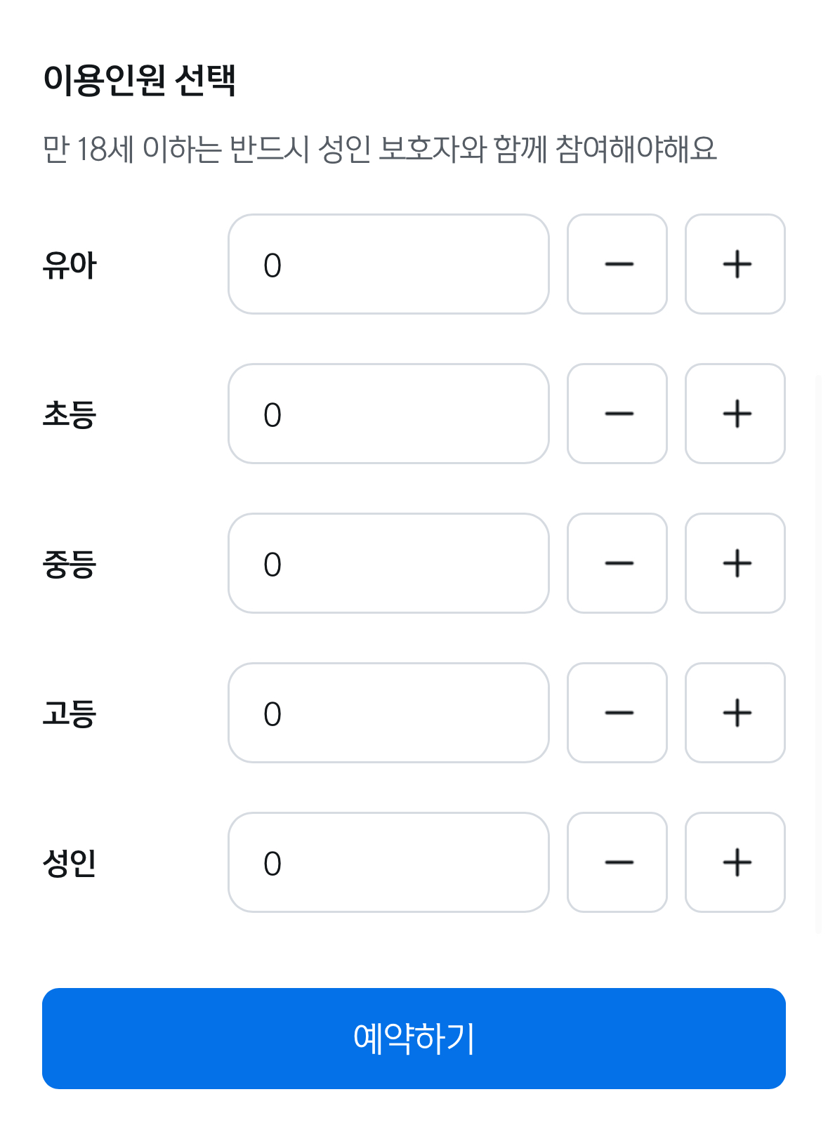 - 만18세 미만이라면 성인보호자 1명 이상과 함께 이용가능