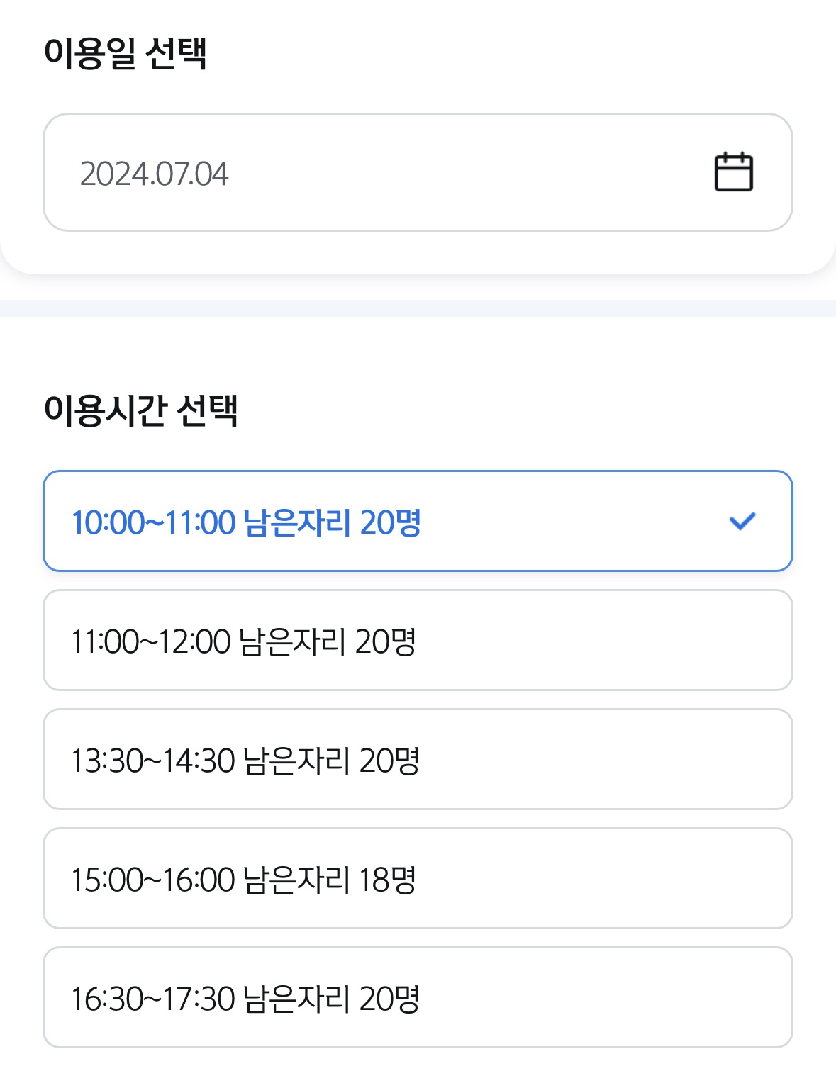 - 이용실 선택 , 이용시간 선택, 이용인원 선택 후 예약하기