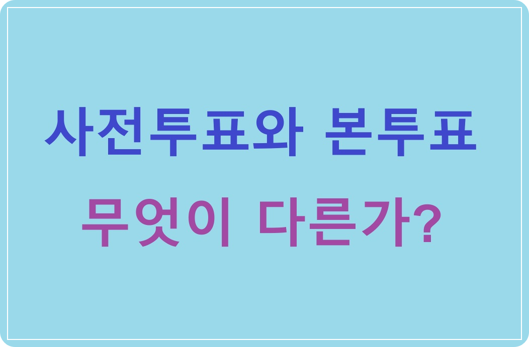 사전투표와 본투표는 투표 시기와 장소, 절차 등에서 차이가 있습니다. 아래에 두 제도를 비교해 정리해 드릴게요.