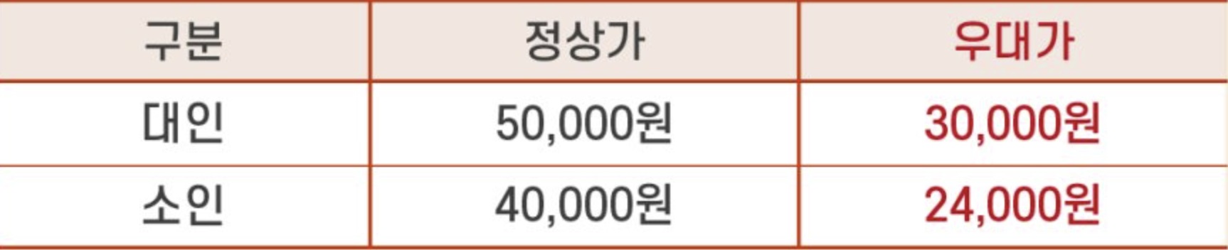 - 36개월 미만 유아 무료입장 (증빙서류 제시)