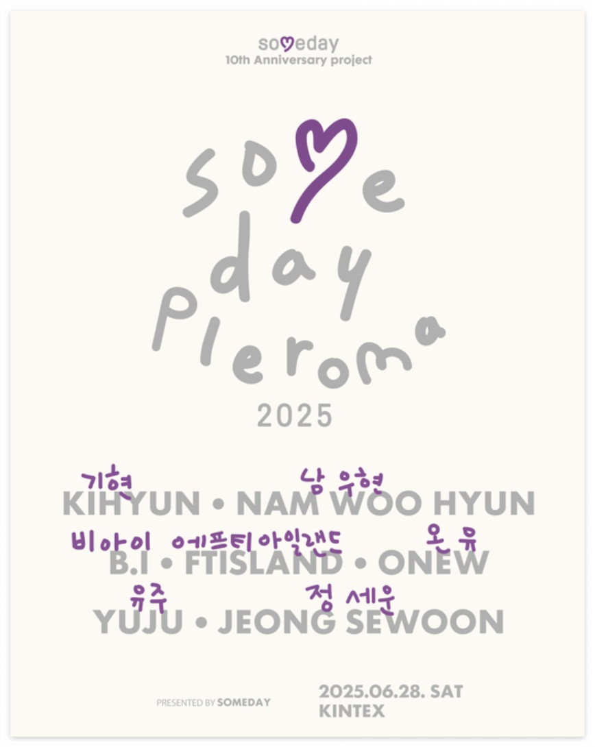 썸데이 플레로마 2025(SOMEDAY PLEROMA 2025)는 썸데이 페스티벌의 10주년을 기념하는 특별한 프로젝트로, 음악을 사랑하는 이들에게 잊지 못할 하루를 선사할 예정입니다.