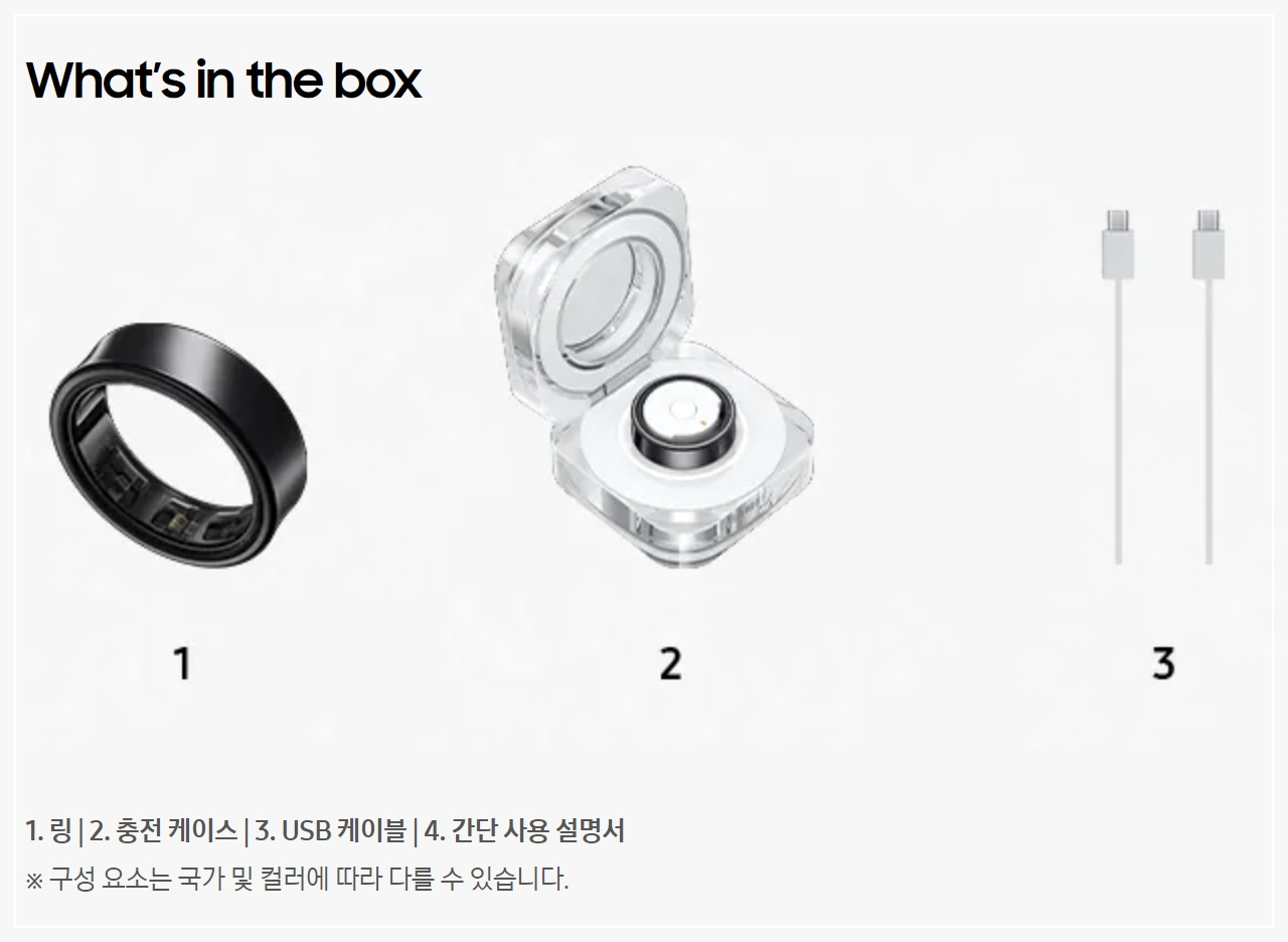 갤럭시링은 미니멀리즘 디자인을 채택하여 일상 생활에서 착용하기 쉽고, 시각적으로도 부담이 없다. 작은 크기에도 불구하고, 내구성이 뛰어나고 생활 방수 기능을 제공하여 일상 생활에서 발생할 수 있는 물기나 땀에 강하다. 다양한 크기와 색상으로 제공되어 개인의 스타일과 선호도에 맞출 수 있다.
