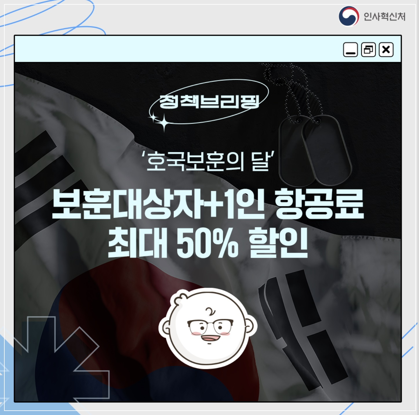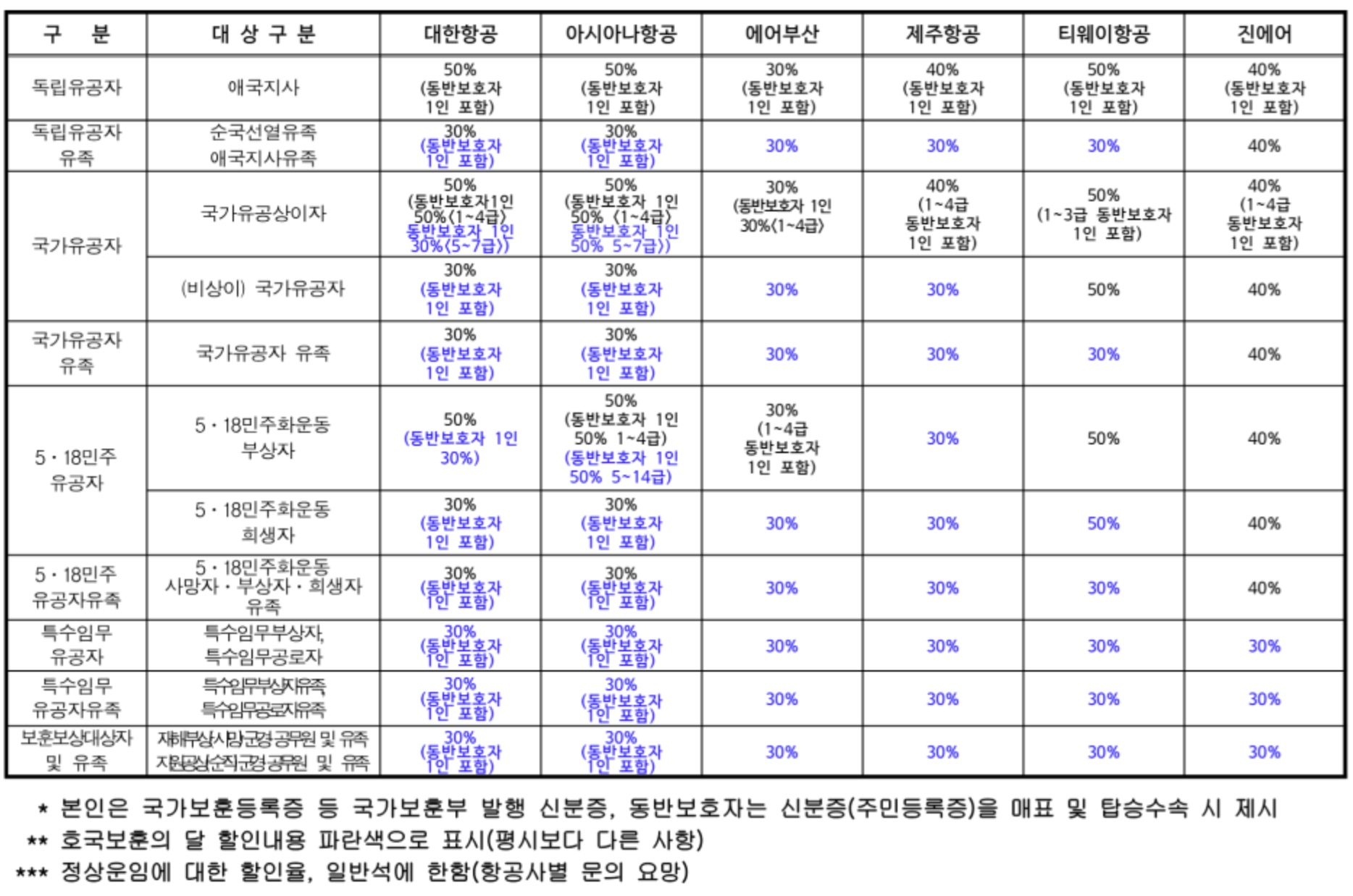 - 보훈 대상별로 국내선 항공료 30~50% 할인