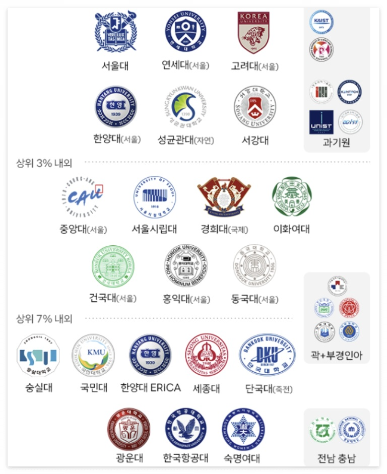 - 서울대, 연세대, 고려대: 국수영탐 1등급 초반~평균 1.2