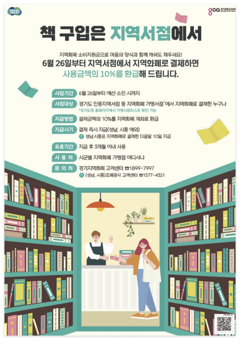 경기도 인증 지역서점에서 지역화폐로 결제 시 결제금액의 10%를