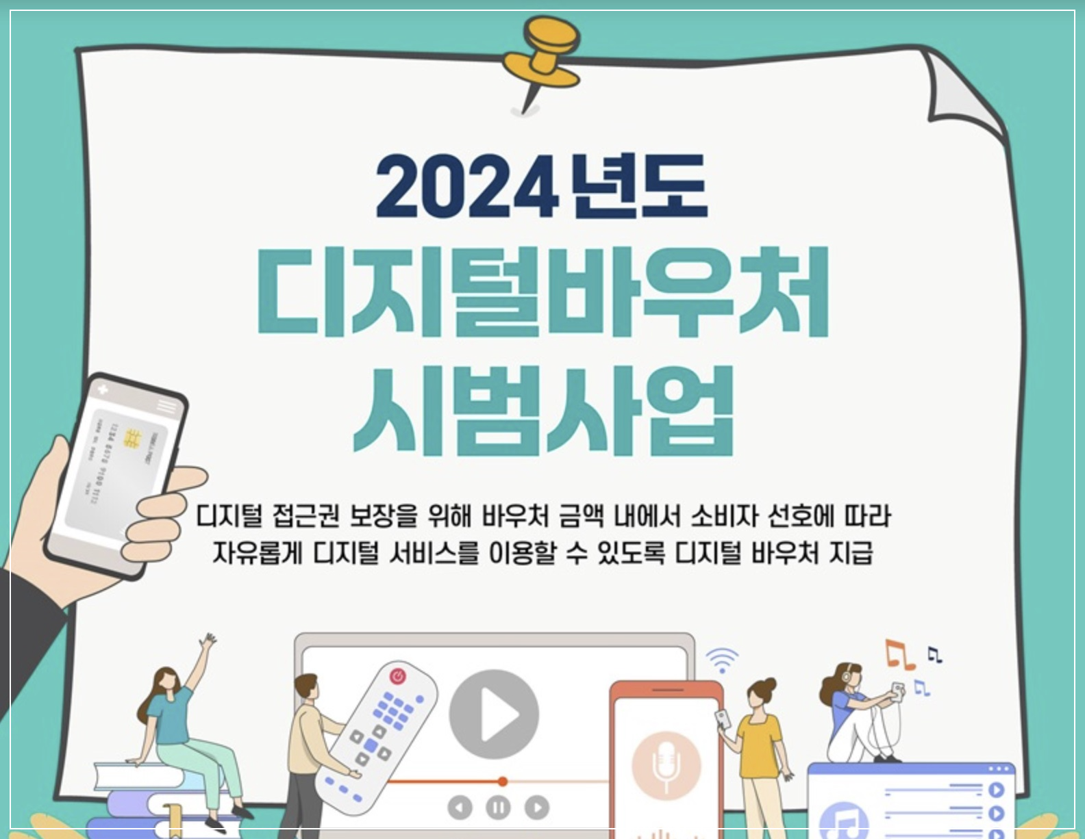 디지털 바우처 시범사업은 디지털 격차 해소 등 디지털 접근권 제고를 위해 취약계층이 기본적인 디지털 서비스를 이용할 수 있도록 바우처를 지급하는 사업입니다.