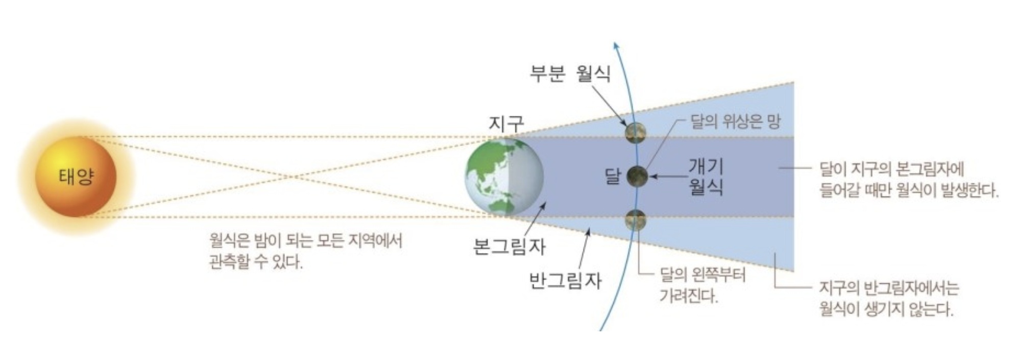 - 원인: 달이 지구 그림자의 가장자리만 통과하기 때문