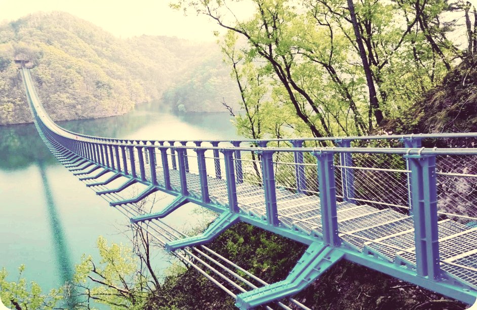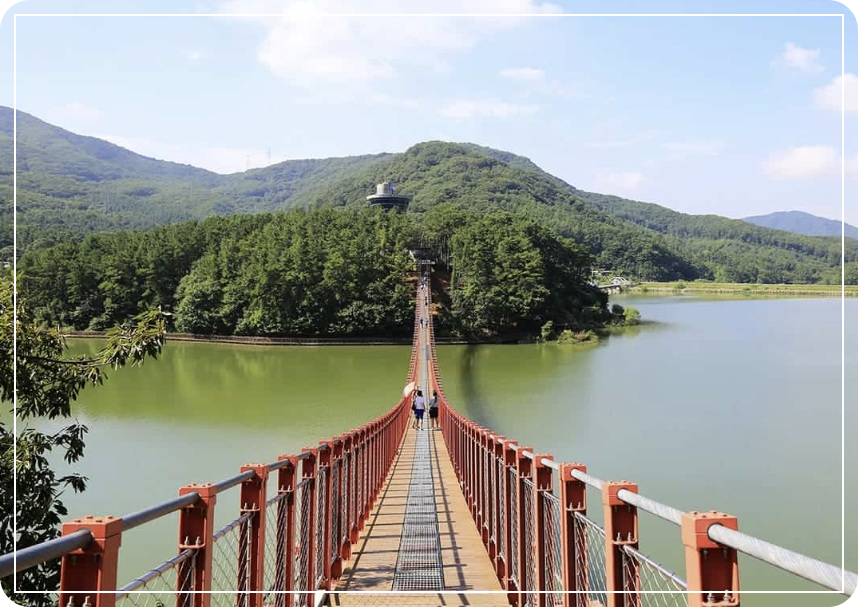 - 호수 위를 가로지르는 220m 길이의 출렁다리.