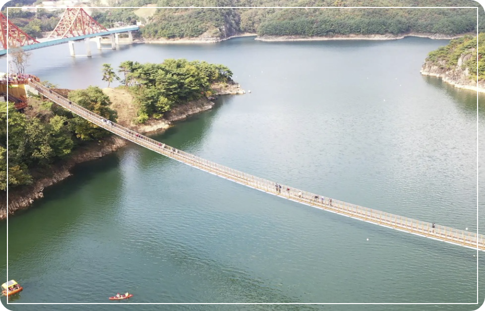- 국내 최장 길이(600m 이상)의 출렁다리로, 호수 위를 걷는 듯한 독특한 체험 가능.