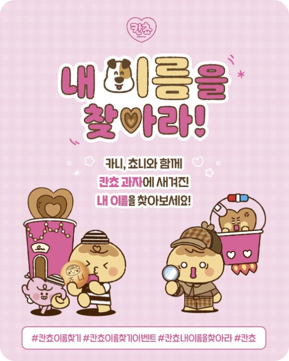 - 소비자는 자신의 이름 또는 지인의 이름이 들어간 칸쵸 제품을 찾아서 사진 찍고 SNS에 인증샷을 올리면 참여 가능.