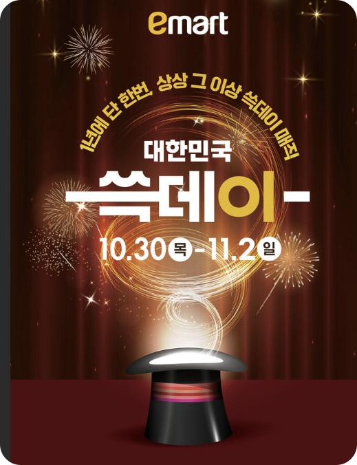 2025 이마트 쓱데이는 연말 소비 성수기를 앞두고 고객들에게 가장 큰 혜택을 안겨줄 최대 규모의 쇼핑 축제입니다. 4일간의 마법 같은 기회를 놓치지 말고, 온 가족 먹거리와 필요한 물품을 알뜰하게 장만하세요!