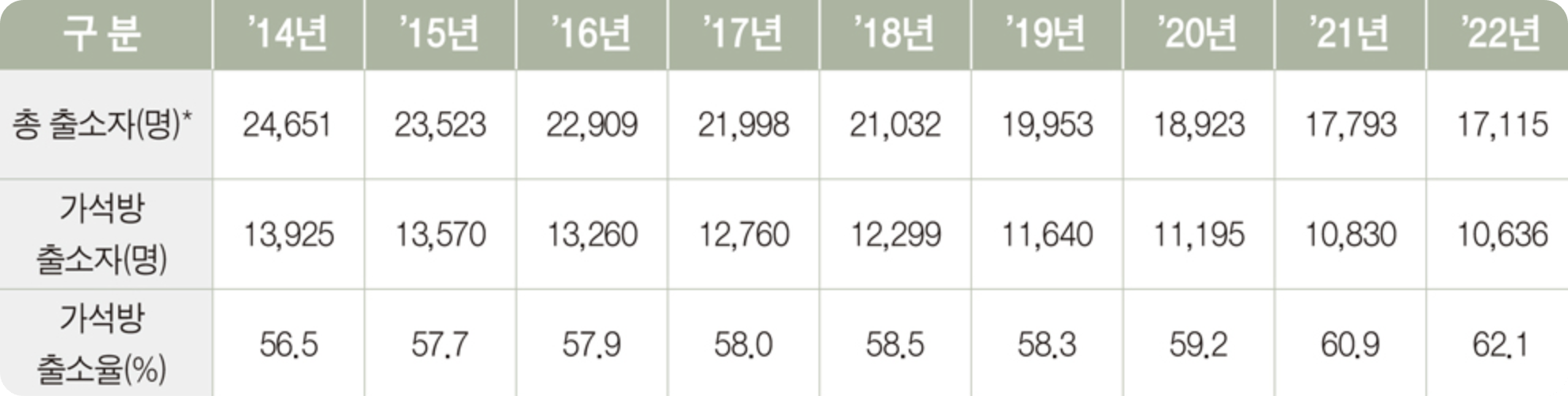 가석방 증가는 단기적인 수용률 완화책일 뿐,