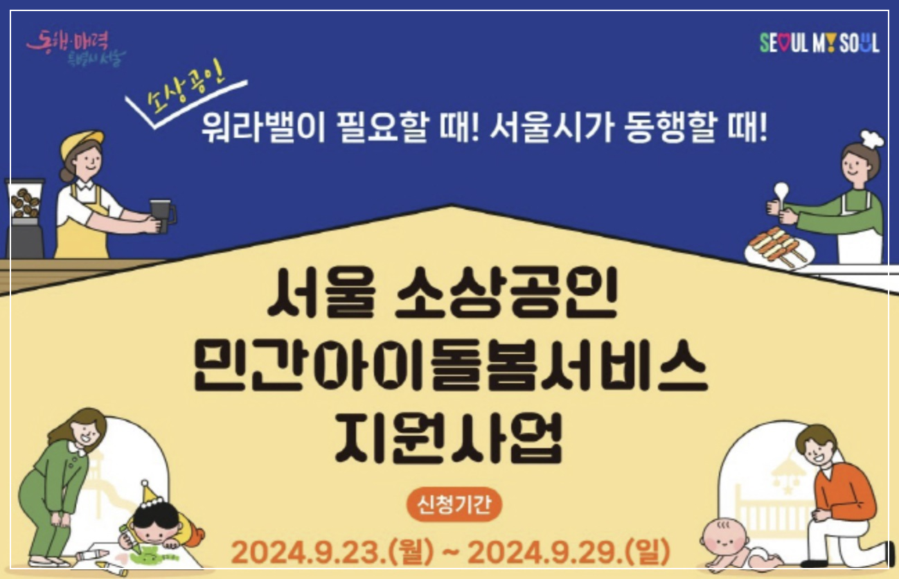 서울시가 소상공인 가구를 대상으로 민간아이돌봄 서비스 이용 시 이용료의 60% 이상 지원합니다.